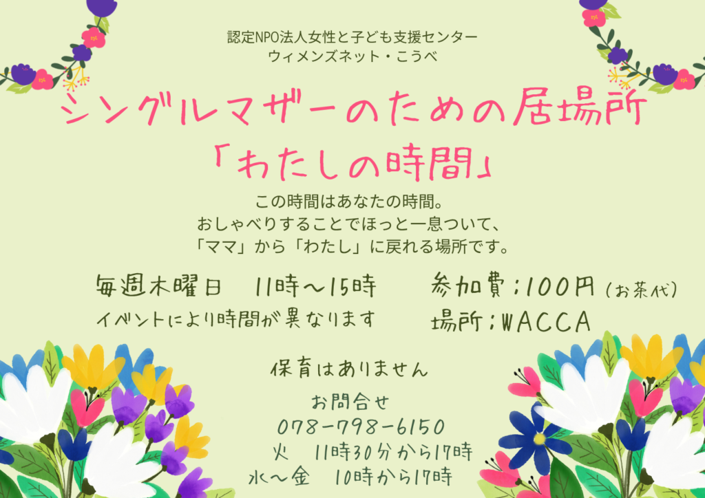 シングルマザーの方を対象に、おしゃべりや交流を通して“ママ”が“わたし”に戻れる場所です。ミニイベントも開催しています。